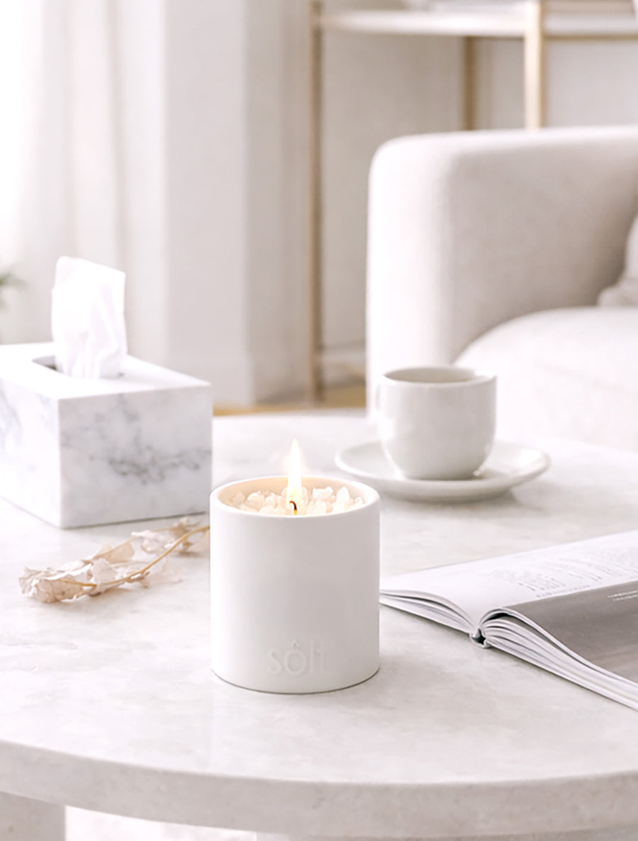 Each candle is brought to life over months of meticulous craftsmanship. The process involves hand-mixed scents, precise pouring, and a carefully controlled setting period. Sea salt crystals are delicately added at just the right moment, ensuring a beautifully finished form.